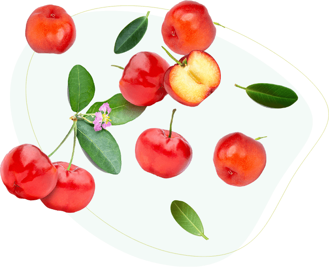Acerola ist eine wertvolle Quelle von natürlich vorkommendem Vitamin C und Bestandteilen wie Carotinoiden, Phenolen, Anthocyanen und Flavonoiden. Im Vergleich zu seinen synthetischen Formen wird das Vitamin C aus der Acerolafrucht viel besser aufgenommen.